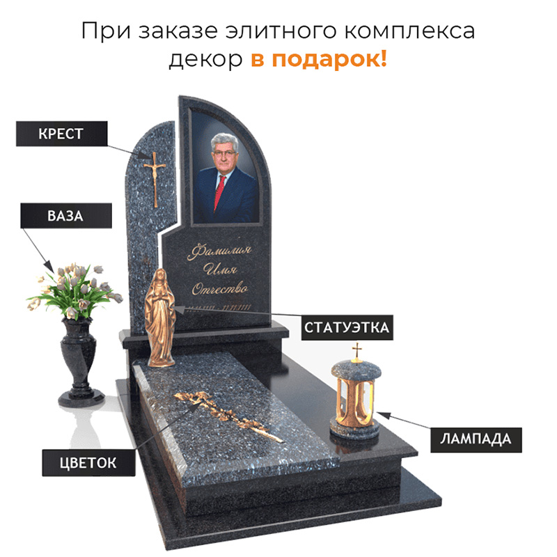 При заказе ЭКСКЛЮЗИВА наша компания дарит любой элемент декора в ПОДАРОК. На выбор: ваза, лампада, статуя, крест, цветок.