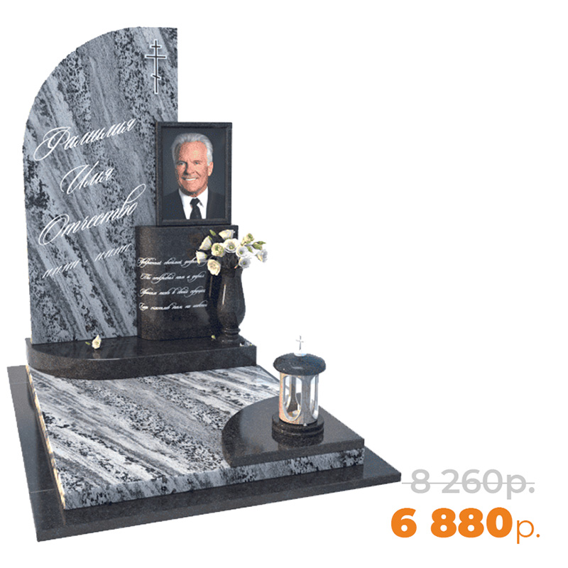 Стоимость снижена на Эксклюзивный памятник ЭП-3 резной формы. Изготавливается с долговечным и ударопрочным медальоном с УФ печатью. Гранит Айс Тундра по специальной цене: 6880 BYN.