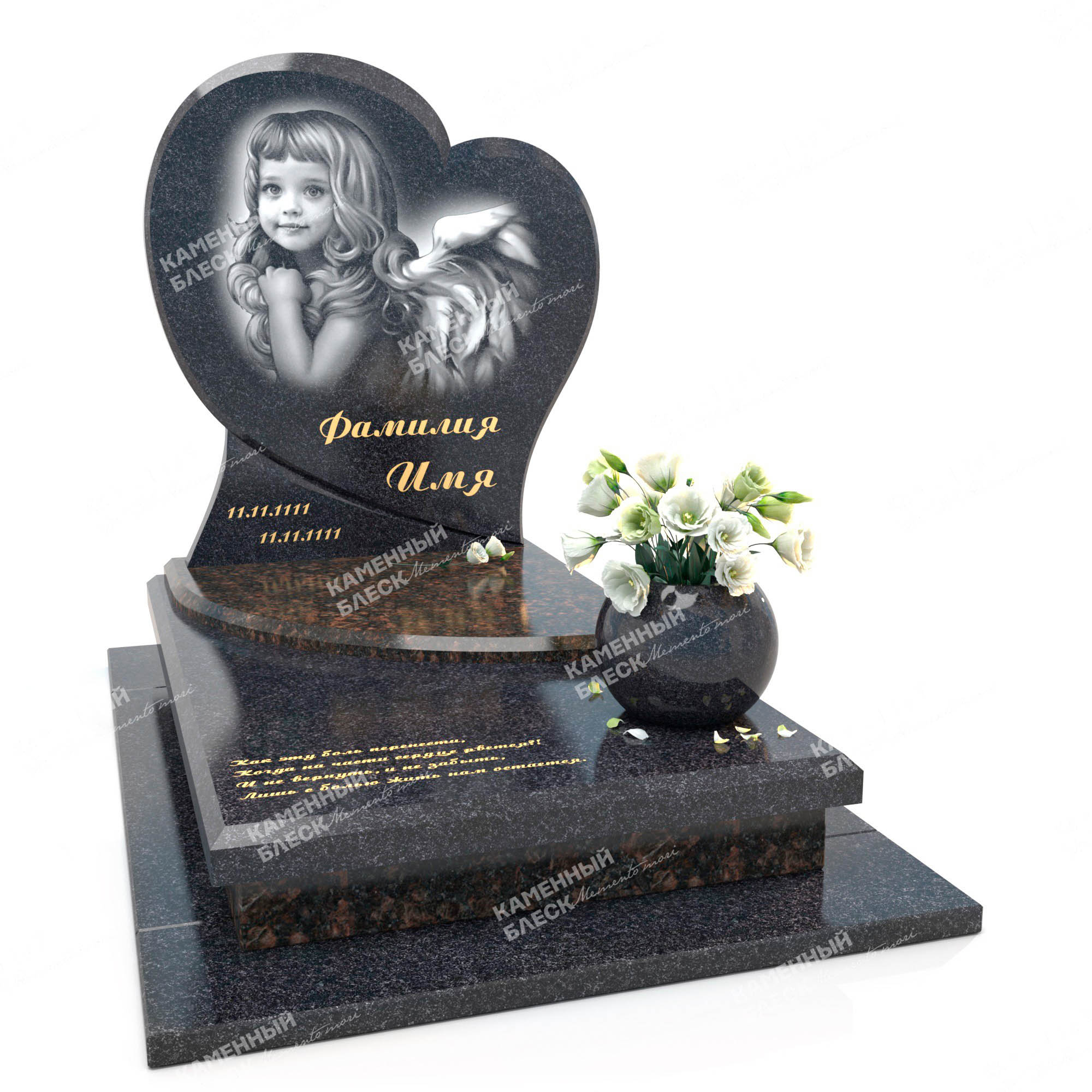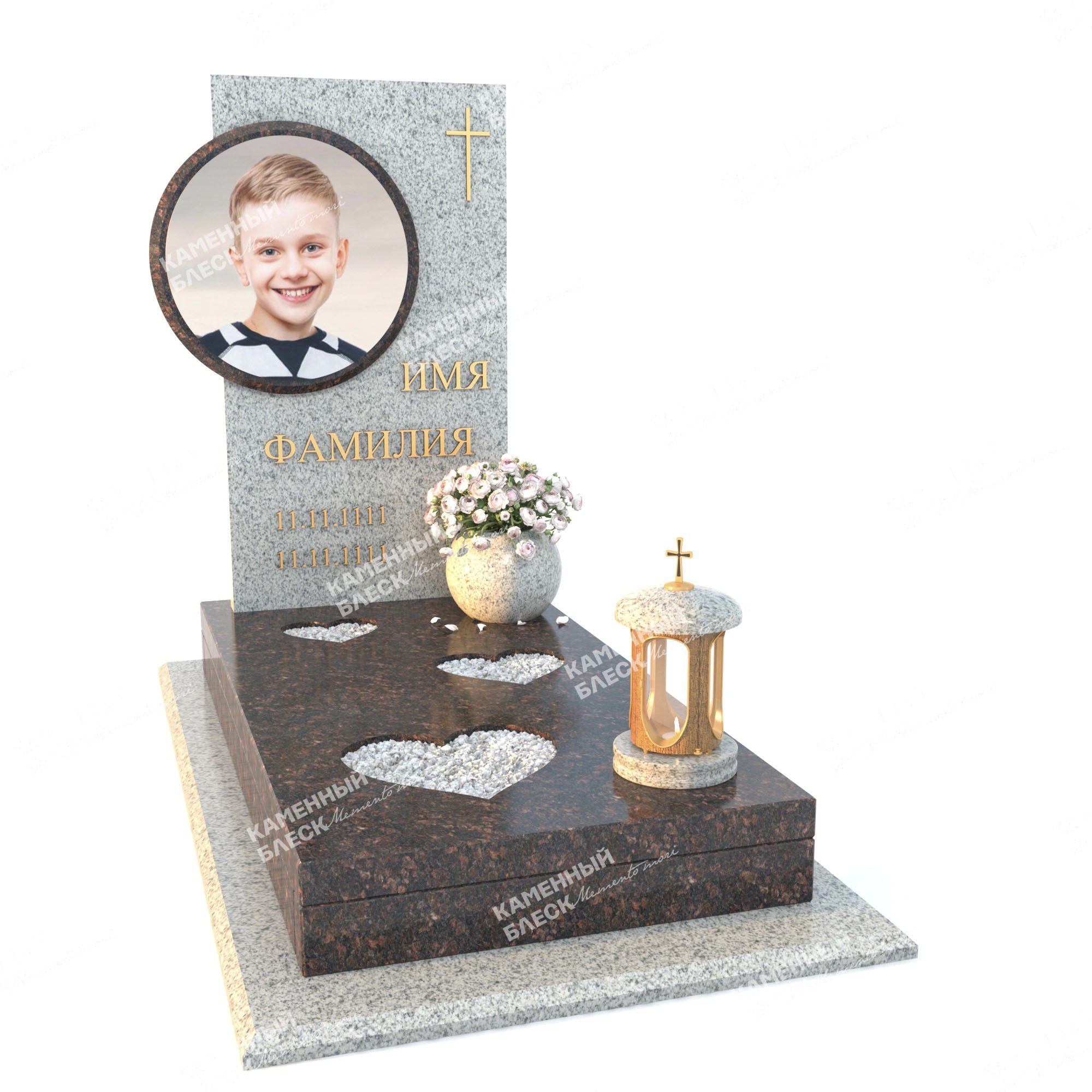 Компания «Каменный блеск» изготавливает и устанавливает памятники любой сложности. У нас можно заказать как одиночную стелу, так и целый мемориальный комплекс, в том числе, для семейных захоронений.
