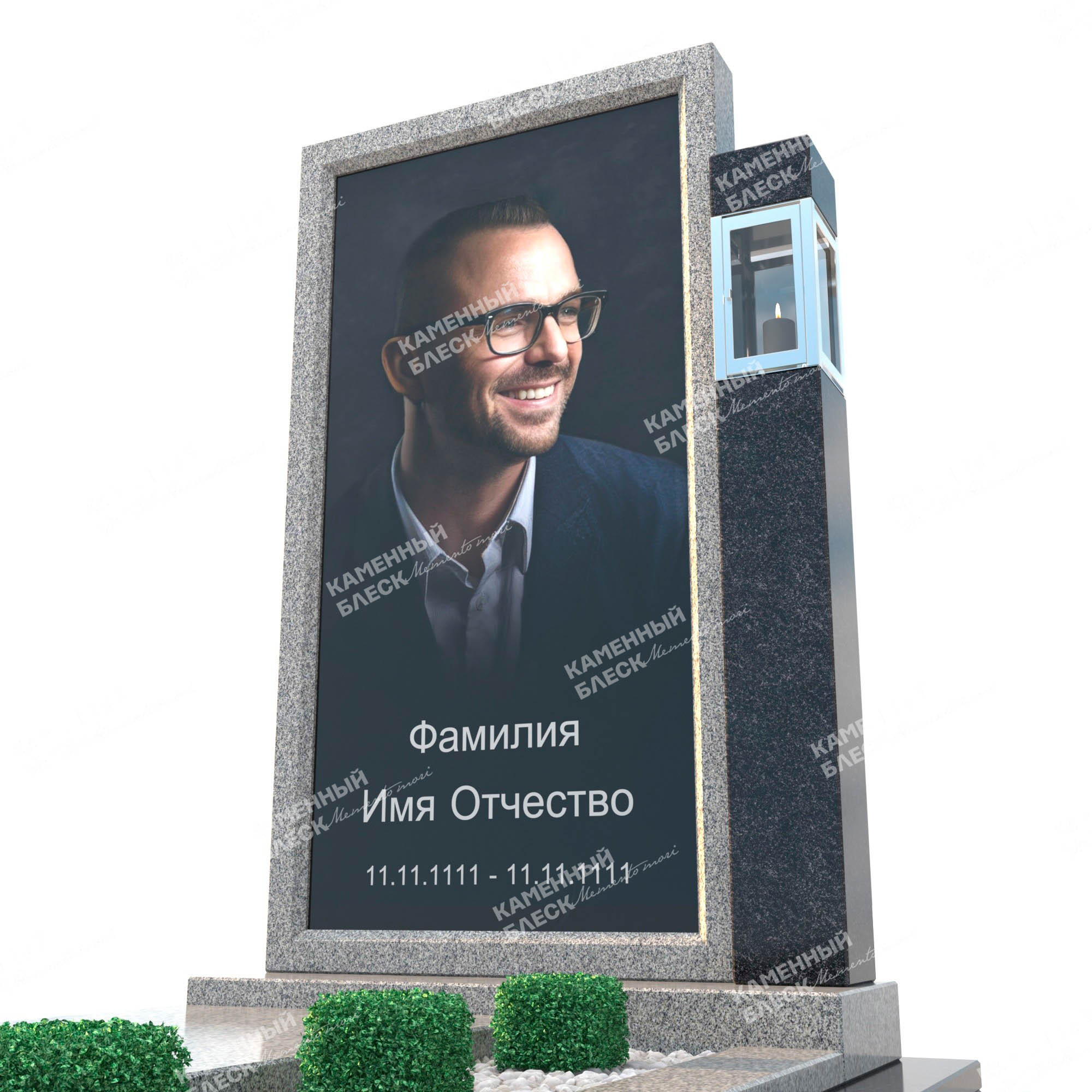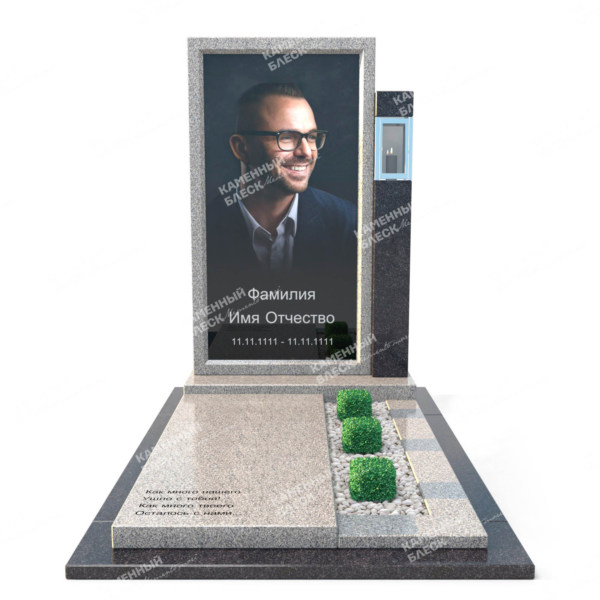 Эксклюзивным стильный памятник со стеклом. Данная модель гранитного памятника выполнена в сочетании двух цветов гранита светлый гранит Мансур и темный Габбро-Диабаз, данные виды гранитов отлично дополняют друг друга. Большое стеклянный медальон позволяет разметить . как фото в полный рост, так и большой портрет вашего близкого. Дополнительный элемент стелы Габбро-Диабаз размещает в себе лампаду. Надгробная плита данной композиции служит основой для стел.